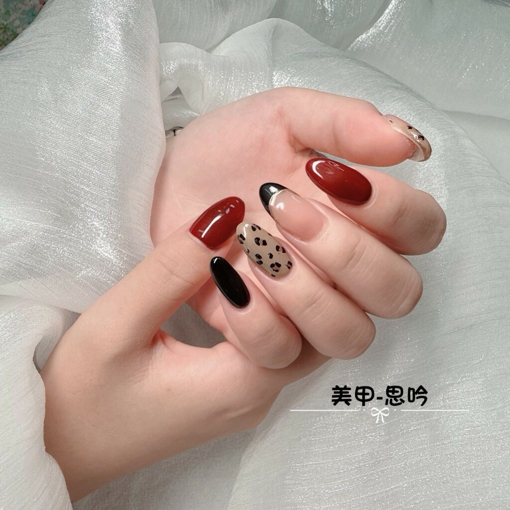 ▼焦糖紅 x 黑亮面 x 豹紋:質感與氣場一次到位。