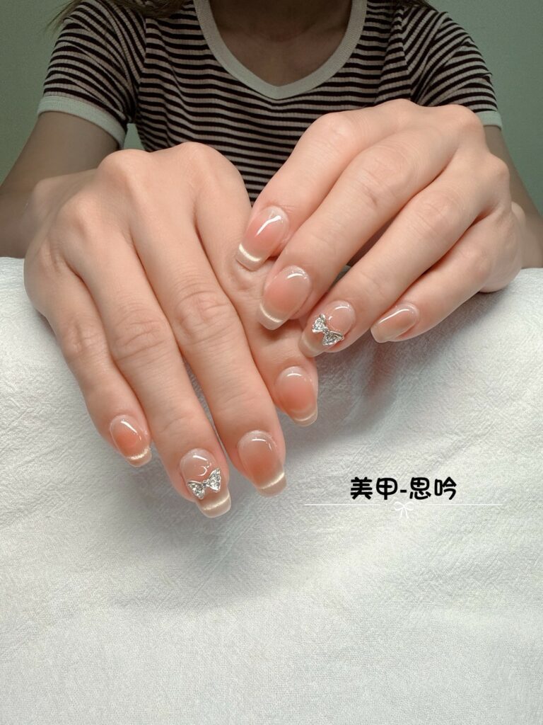 ▼法式貓眼 x 銀色小蝴蝶,極簡中帶有一絲高級感。